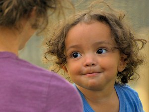η Αργυρώ κάνει κούνια και χαμογελάει.