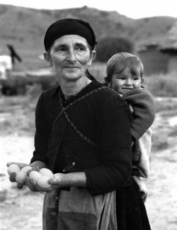 Μια φωτογραφία που αξίζει όσο χίλιες άλλες. Μια αγέρωχη αγρότισσα με το εγγόνι της ζαλίγκα, στο Θεσσαλικό κάμπο της δεκαετίας του 1950. Φωτογραφία του σπουδαίου Τάκη Τλούπα (Λάρισα 1920-2003)